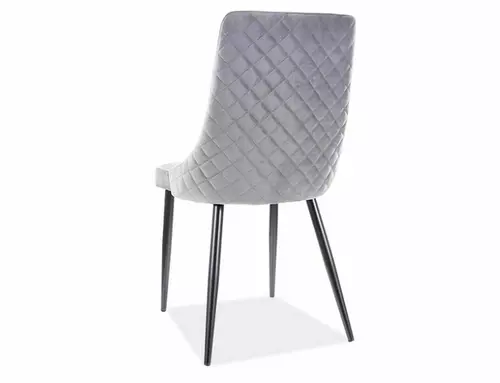 Krzesło, tkanina aksamit: Bluvel 14 - szary, stelaż: metal, kolor: czarny mat. Tył oparcia posiada ozdobne pikowanie w romby.