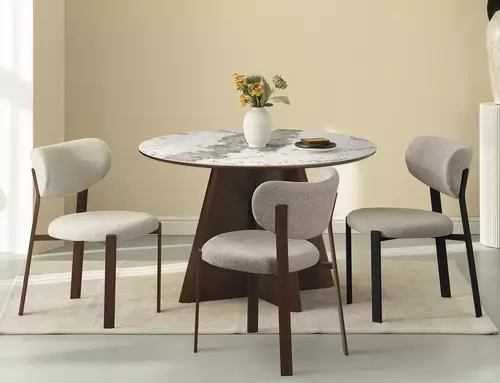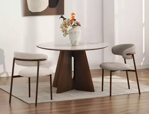 Stół, blat: MDF + ceramika Pandoro, stelaż: MDF + okleina naturalna, kolor: biały połysk / orzech.