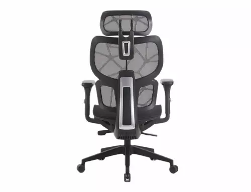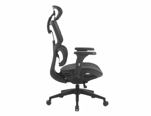 Fotel obrotowy, tapicerka: siatka, stelaż: tworzywo, kolor: czarny / czarny. Multiblock, regulowane: podłokietniki 4D, zagłówek, odcinek lędźwiowy.
