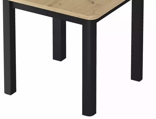 Stół rozkładany, blat: płyta laminowana, stelaż: MDF, kolor: dąb artisan / czarny mat. Uwaga: wkładki przechowywane osobno.