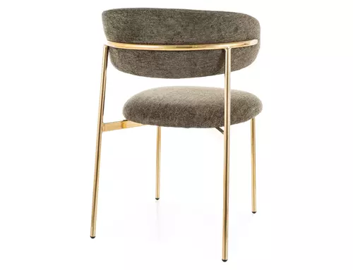 Krzesło, tapicerka: tkanina Raven 78, stelaż: metal, kolor: oliwkowy / złoty.