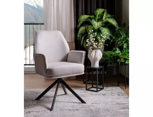 Krzesło, tapicerka: tkanina Brego 22, stelaż: metal, kolor: jasny beżowy / czarny mat.Funkcja auto-return - siedzisko obracane w zakresie 180st, z funkcją powrotu do pierwotnej...