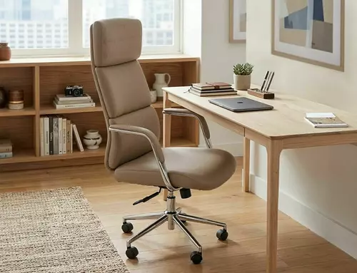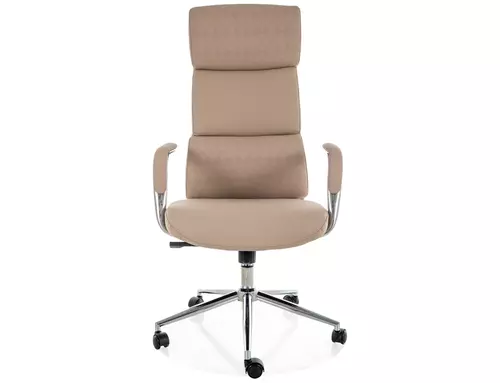 Fotel obrotowy, ekoskóra, kolor: beż, multiblock, stałe podłokietniki.