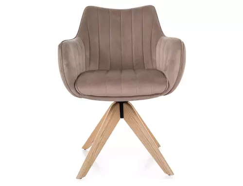 Krzesło, tapicerka: tkanina aksamit: Bluvel 40, stelaż: drewno jesion, kolor: ciemny beżowy / dąb.Funkcja auto-return - siedzisko obracane w zakresie 180st, z funkcją...