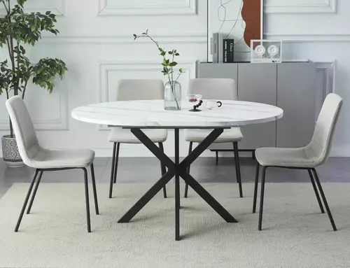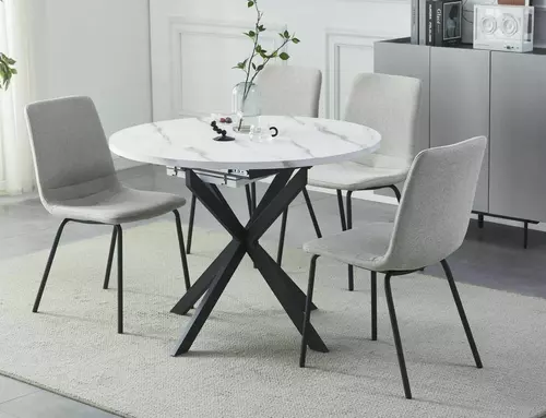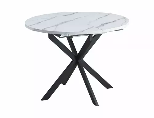 Stół rozkładany, blat: płyta MDF + melamina, stelaż: metal, kolor: biały efekt marmuru / czarny.