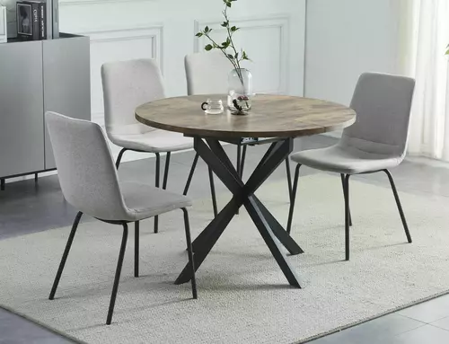 Stół rozkładany, blat: płyta MDF + melamina, stelaż: metal, kolor: orzech vintage / czarny.