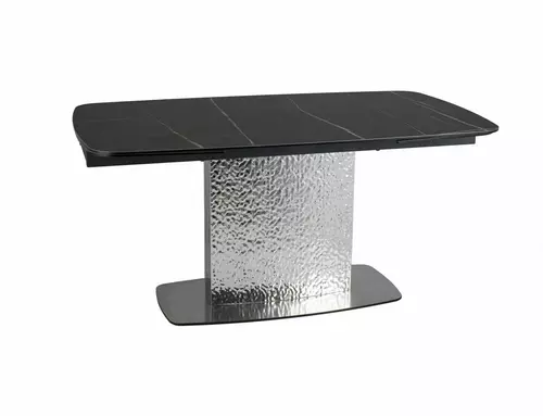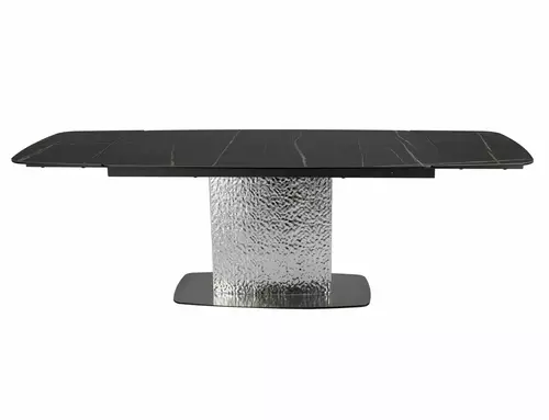 Stół rozkładany, blat: szklo hartowane + ceramika SAHARA NOIR, stelaż: metal, kolor: czarny mat / stal nierdzewna.