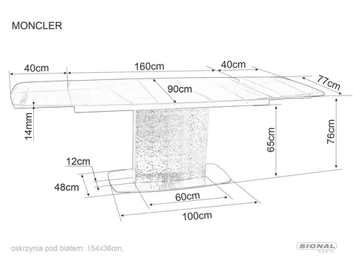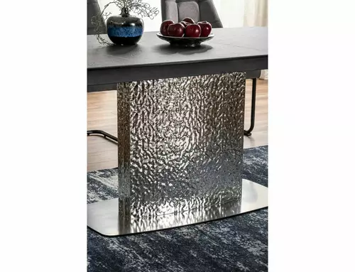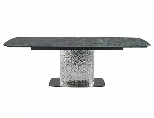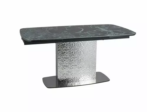 Stół rozkładany, blat: szklo hartowane + ceramika VERDE ALPI, stelaż: metal, kolor: morski / stal nierdzewna.