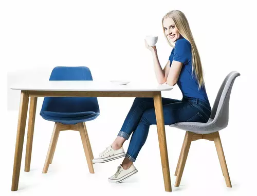 Stół, blat: MDF, kolory: biały / stelaż: drewno kauczukowe, kolor: dąb.
