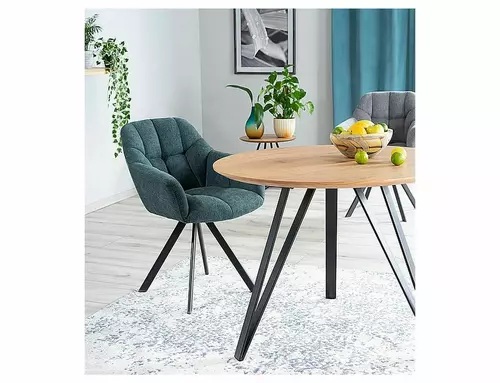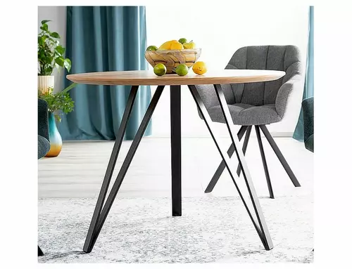 Stół, blat: MDF+okleina, stelaż: metal, kolor: dąb / czarny mat.